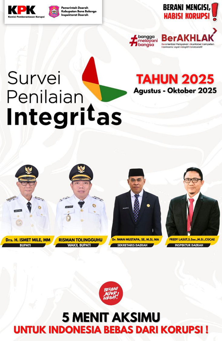 12 September 2025Bone Bolango – Pemerintah Kabupaten Bone Bolango bersama Badan Pengawasan Keuangan dan Pembangunan (BPKP) menggelar pertemuan membahas progres pelaksanaan Pembangunan Manajemen (PM) Sistem Pengendalian Intern Pemerintah (SPIP) Terintegrasi di lingkungan Pemda Bone Bolango. Pertemuan tersebut menjadi wadah evaluasi sekaligus koordinasi...